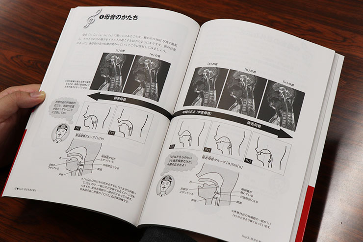 「実は『E』や『I』では舌根が前に来て、喉の奥の空間が広くなる。これは正面から鏡で見るだけではわからないけど、MRIを使って、発声しているときの喉の様子を画像診断するとわかること。パヴァロッティやドミンゴら、名歌手の口の中が映っている動画を見ても、EやIで舌根が上がっている。彼らがこの理屈を知っていたかどうかは知らないけど、僕は自分がMRIに入ってみて『ああ、やっぱりそうなるんだ』と思ったんだ」